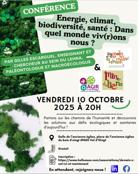 Gilles Escarguel, enseignant-chercheur de LEHNA, paléontologue et macroécologue, nous fait l'honneur de venir donner sa conférence "Energie, climat, biodiversité, santé : dans quel monde viv(r)ons nous?" !