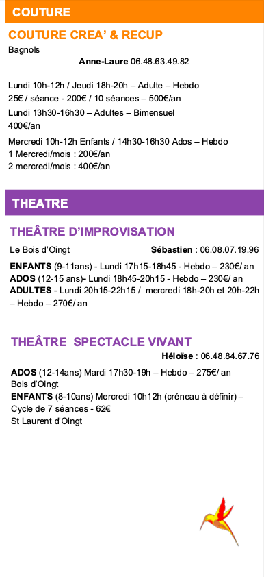 Suivez les instructions en choisissant le tarif et en renseignant les informations demandées et procédez au règlement. (Merci de bien préciser votre ou vos activités pratiquées et le nom de l'animateur).