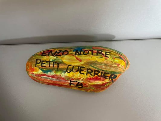 « J’ai trouvé que cette chasse aux galets était un merveilleux moyen de redonner de la joie aux familles tout en leur permettant de se promener, d’avantage dans la nature. Je choisis des endroits sympathiques pas trop loin de chez moi vu les limitations actuelles (le tour du château de Montmelas ou La Chapelle de Chevennes ou Madone De Blacé....) ce qui permet aussi de faire connaître le coin à des personnes qui ne connaissent pas. J’ai quelques personnes qui donnent des nouvelles de mes galets certains de mes galets ont déjà voyagé dans plusieurs communes du beaujolais.».