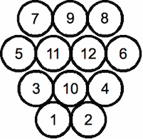 Ex : seule la quille 12 tombe, on marque 12 points ; la quille 12 et 14 tombent, on ne marque que 2 points car 2 quilles tombées.