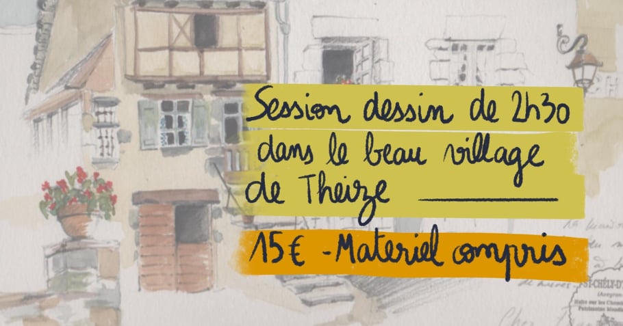 Le 1er mai, de 10h à 12h30, venez tester une session dessin en plein air pour une Croc'balade sur la thématique du « patrimoine » ! Pendant 2h30, venez dessiner dans le beau village de Theize accompagné de Flavienne, enseignante en ateliers et écoles d'art: Beaux arts, UTA ( Université Tous Âges)...depuis plus de 25 ans.